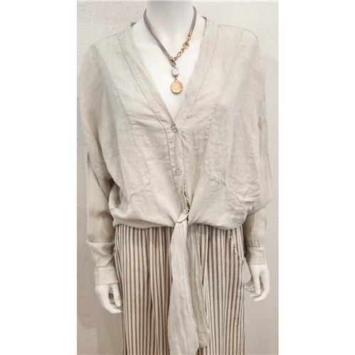 Diverse – Agnes Linen Tie Front Shirt – Oatmeal