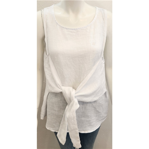 Diverse – Christina 100% Linen Tie Front Shirt – White