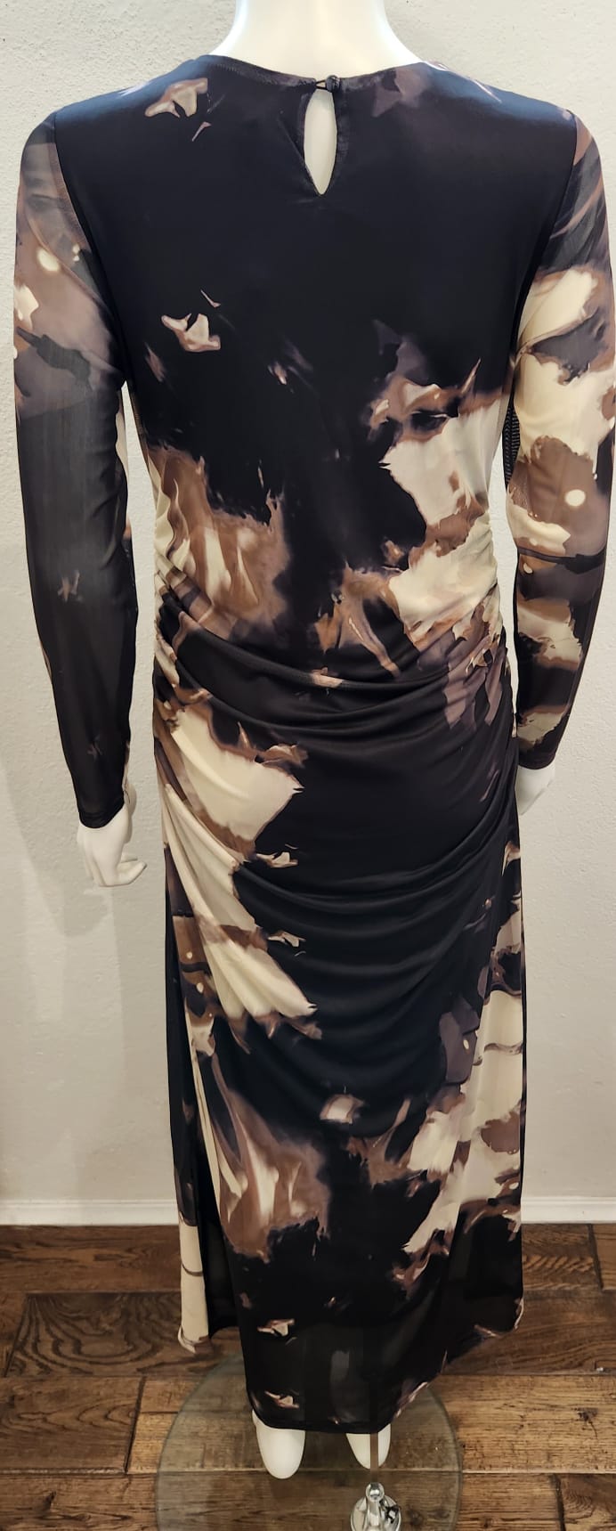 Diverse – Serena Mesh Print Dress – Black Abstract Print
