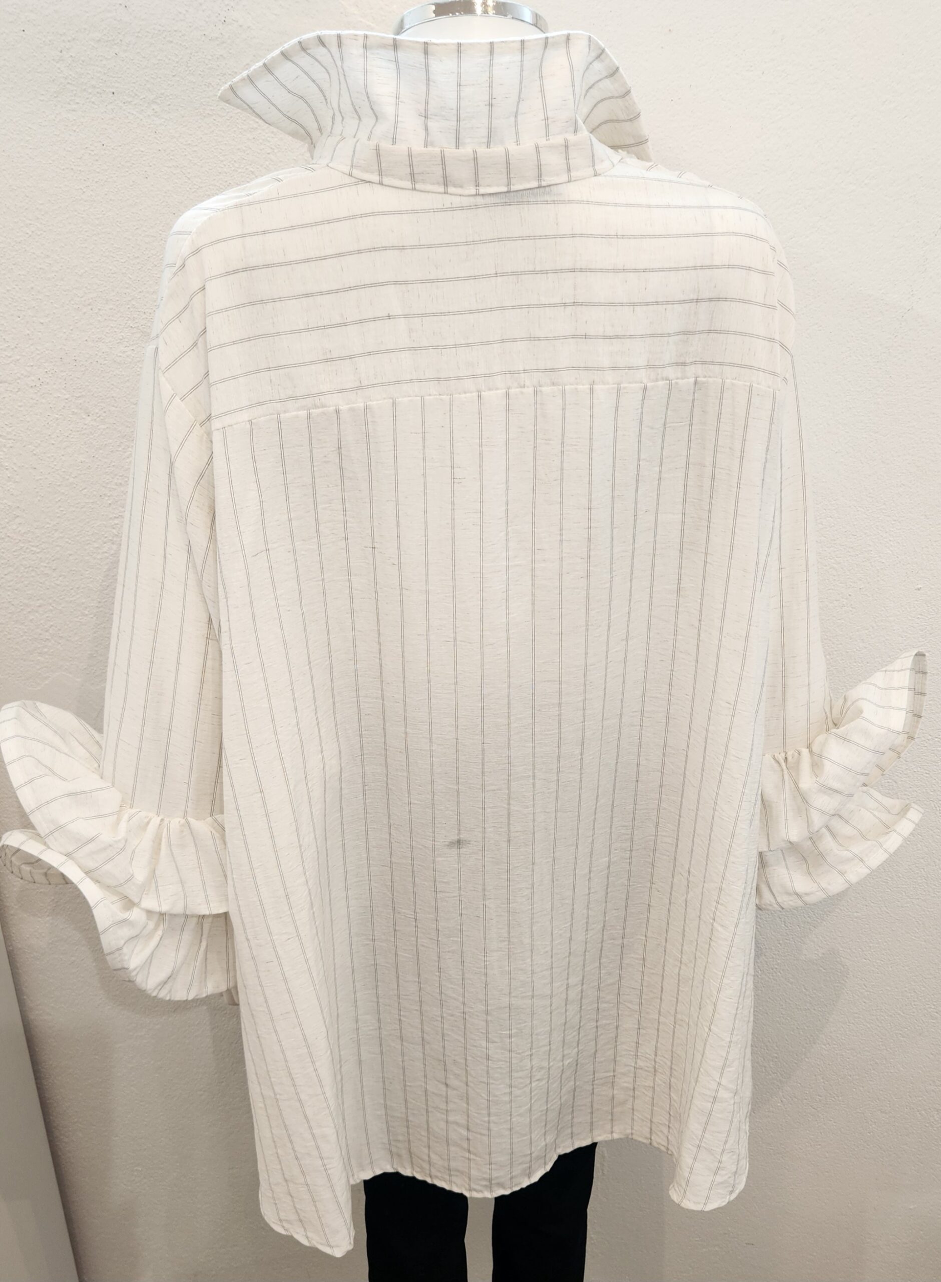 Diverse – Undine – Striped Diamante Ruffle Shirt – Ecru