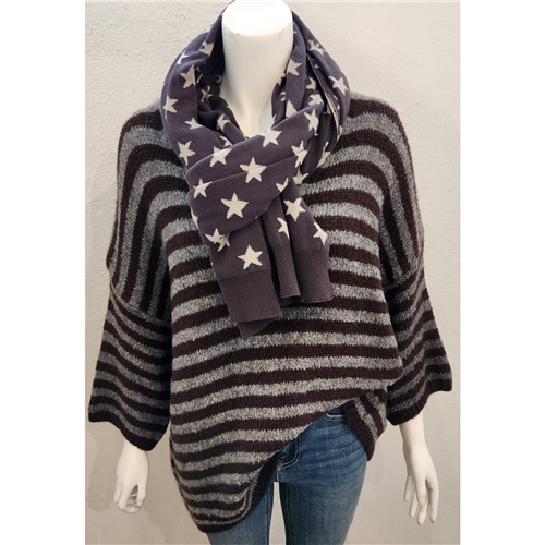 Sarah Tempest – Striped ‘V’ Neck – Chocolate and Grey